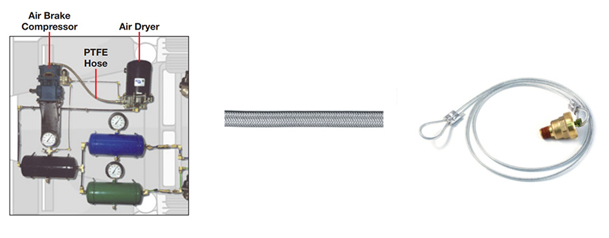 يتكون نظام الضاغط من ثلاثة مكونات: الضاغط ، مجفف الهواء ، وخرطوم التوصيل أو الأنابيب. لا يمكن استخدام تدفق الهواء الناتج عن الضاغط حتى يكون مشروطًا. هناك مشكلتان مع الهواء المضغوط الخام. أولاً ، الهواء القادم من الضاغط ساخن جدًا بالنسبة للأنابيب القياسية. يتم استخدام خرطوم PTFE لتوصيل الضاغط بالمجفف لأنه يمكنه التعامل مع درجات الحرارة حتى 400 درجة فهرنهايت. يمكن التعرف على خرطوم PTFE بواسطة جديلة الفولاذ المقاوم للصدأ التي تعمل كغطاء وتعزيز.